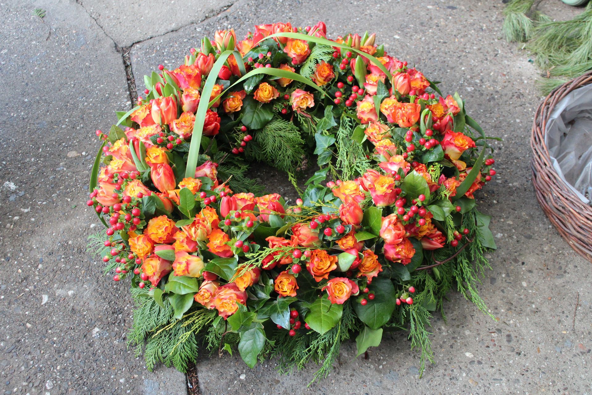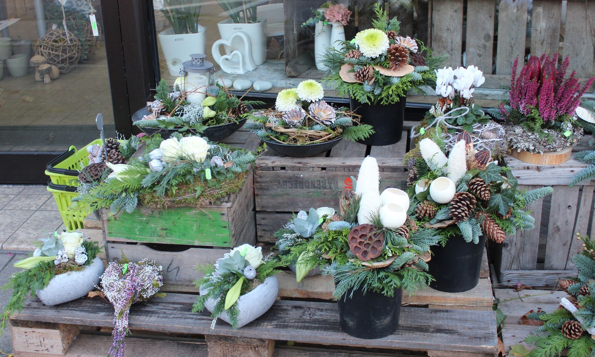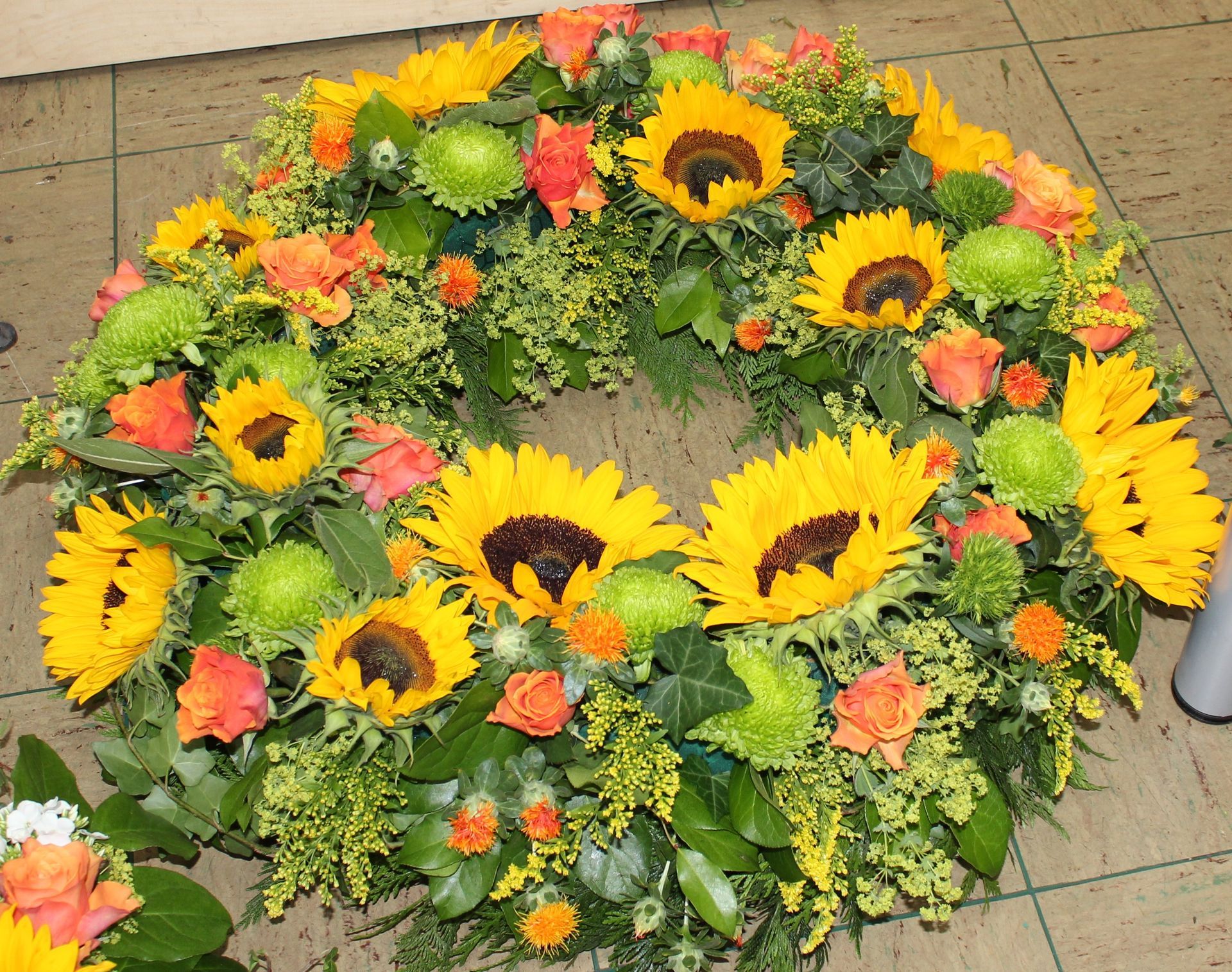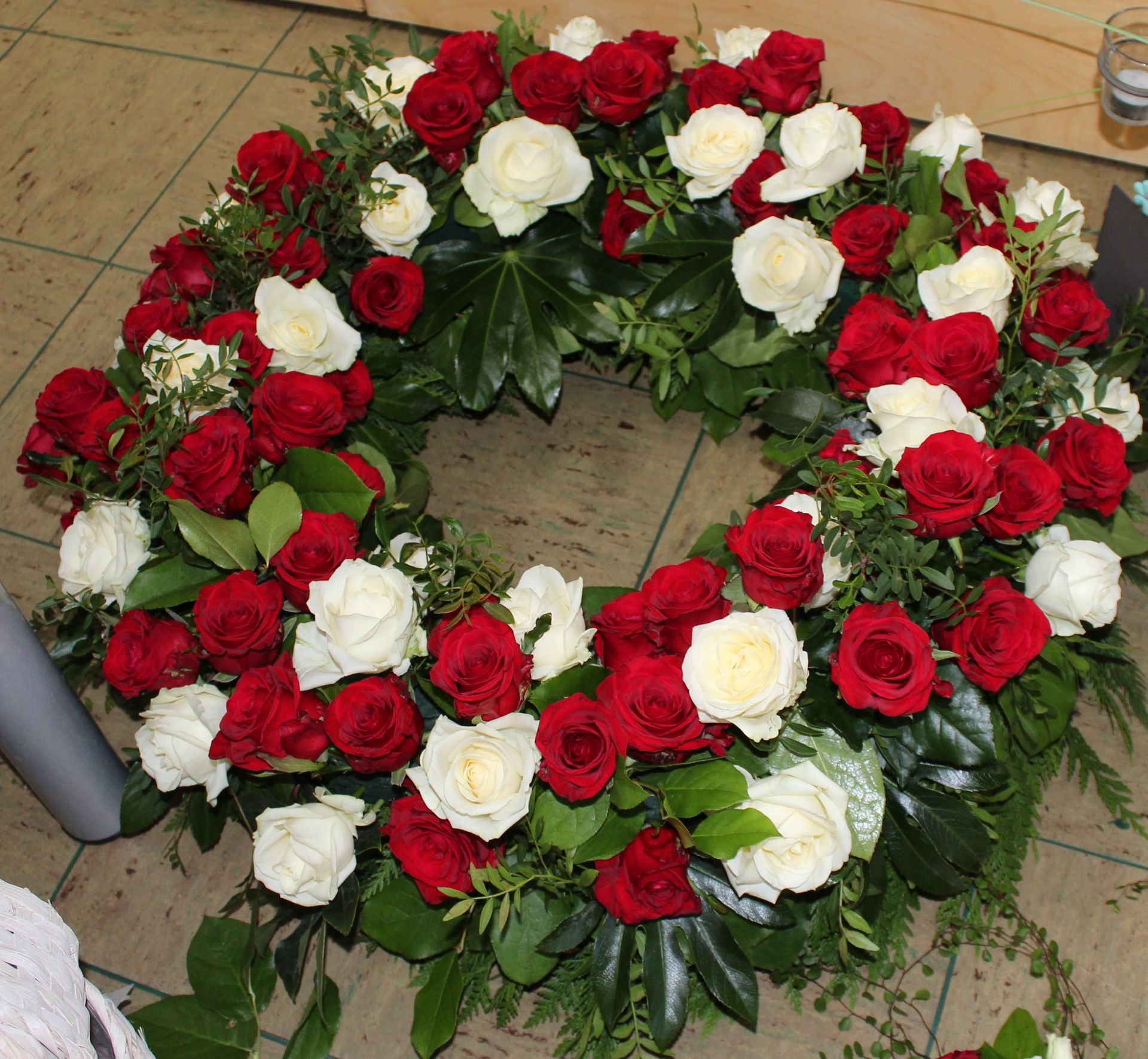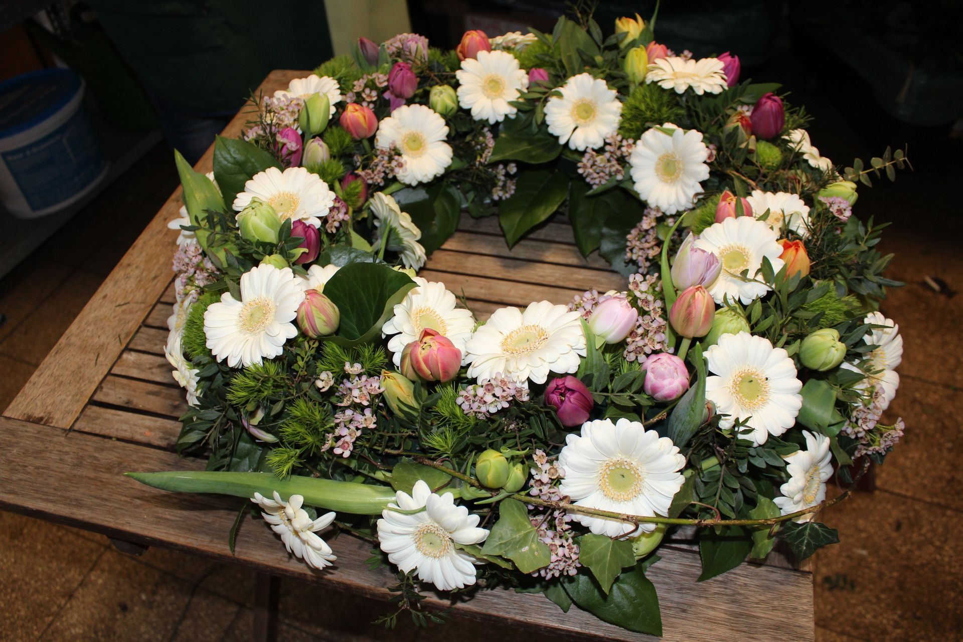 In Zeiten des Abschieds stehen wir Ihnen einfühlsam zur Seite. Unser erfahrenes Team berät Sie gerne bei der Auswahl der Blumen und Farben und stellt Ihnen individuell gestaltete Kränze und Gestecke für einen liebevollen Abschied zusammen. Wir bieten Ihnen auch die Möglichkeit, die Trauerfloristik mit einer persönlichen Beschriftung zu versehen. Unsere Floristen zeigen Ihnen verschiedene Vorschläge für Schleifen und beraten Sie bezüglich der gewünschten Schleifentexte. Darüber hinaus kümmern wir uns um die Lieferung der angefertigten Kränze und Gestecke zum Friedhof.