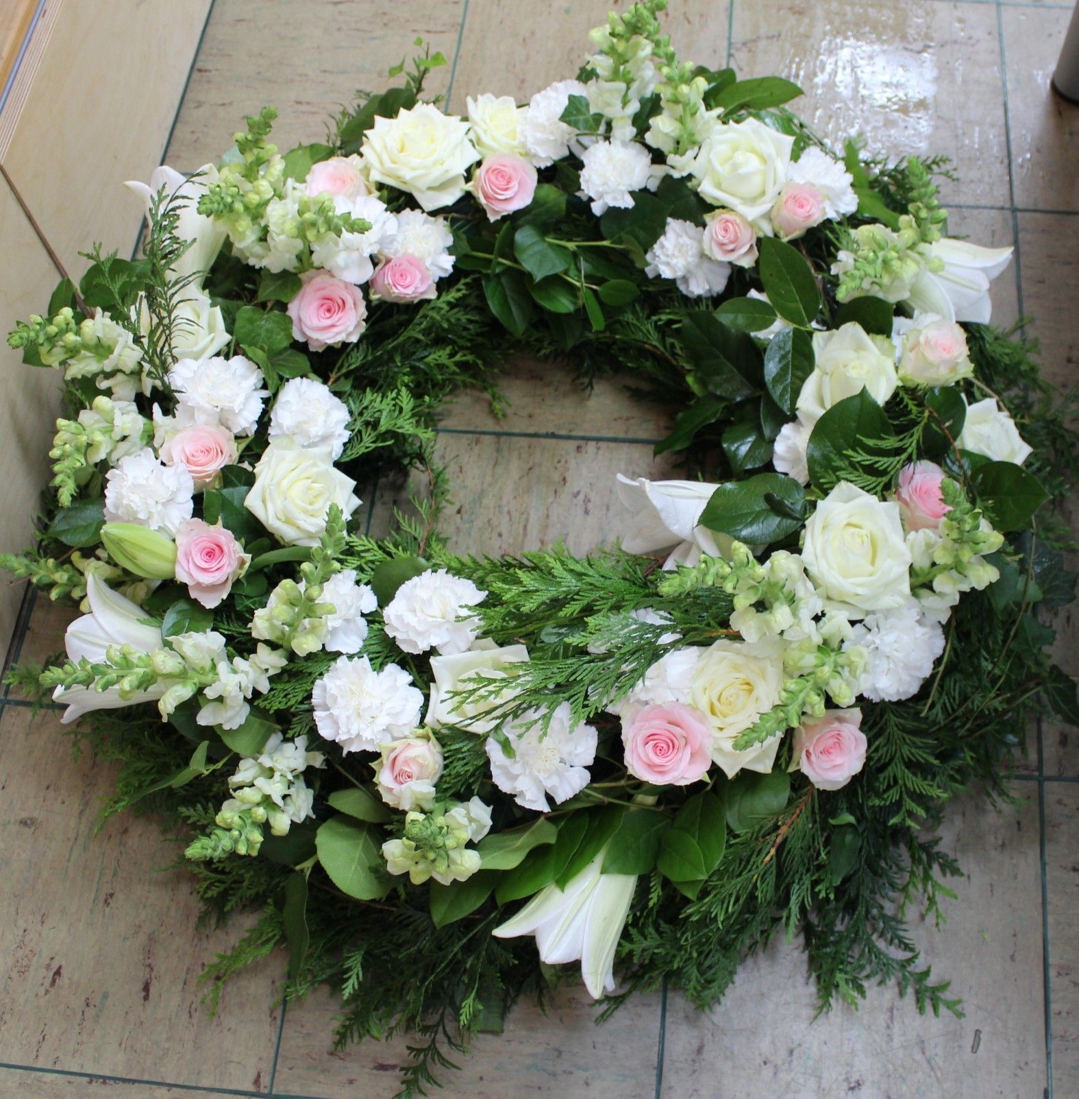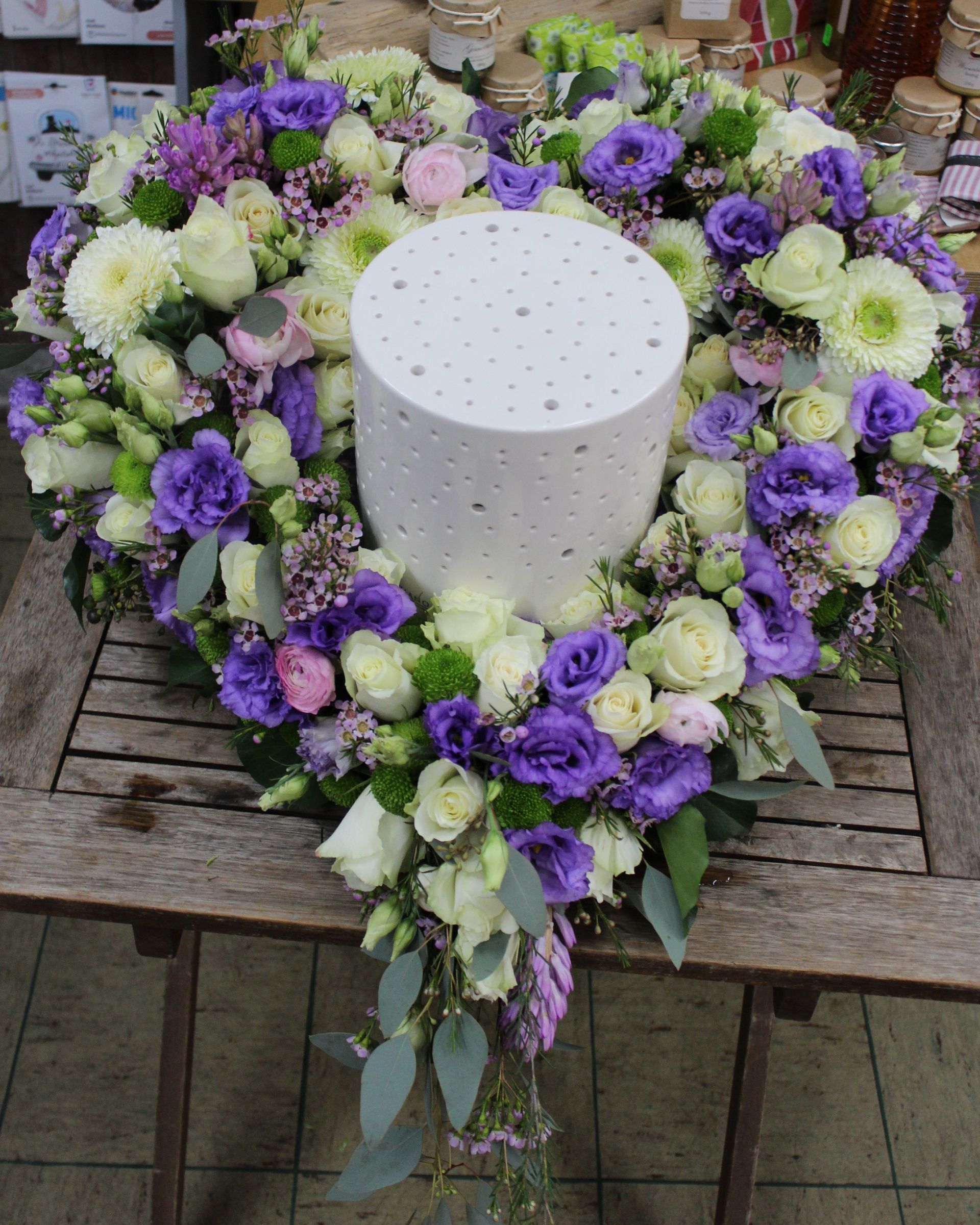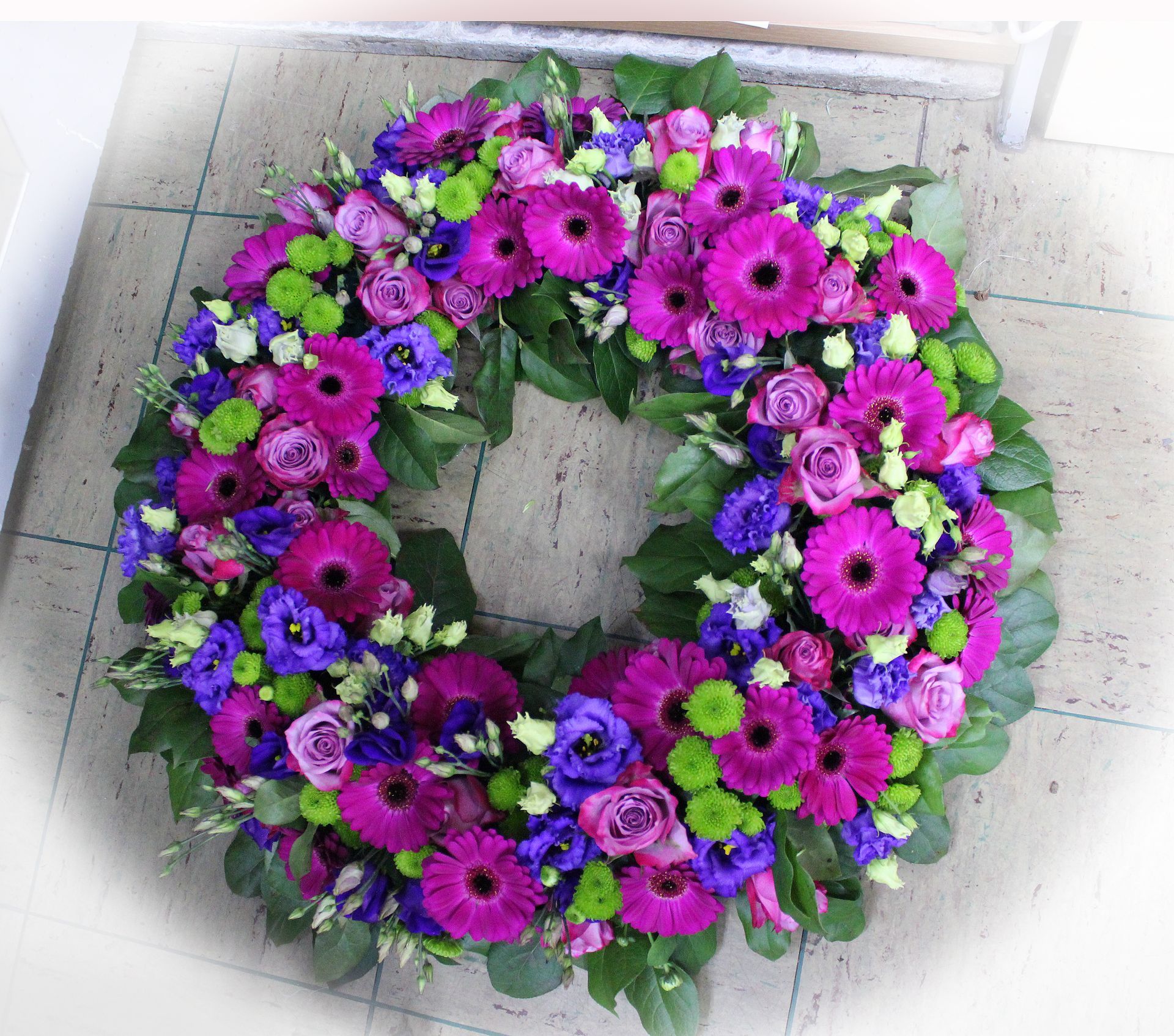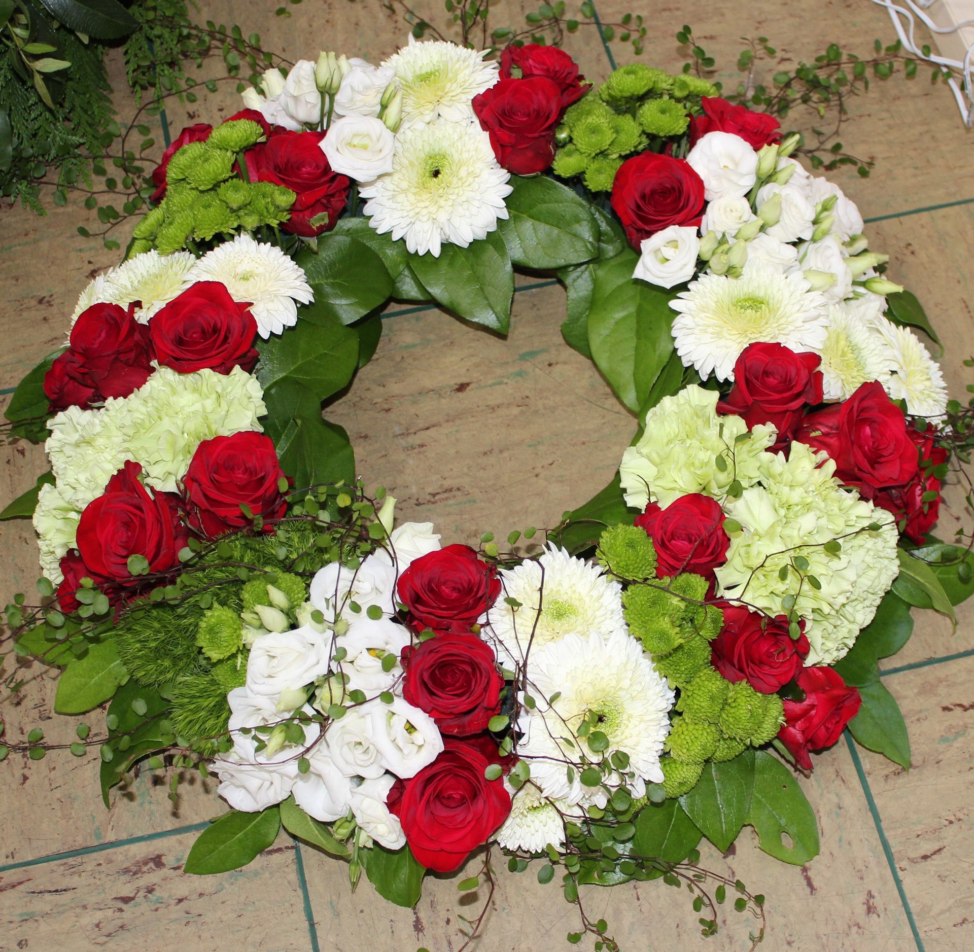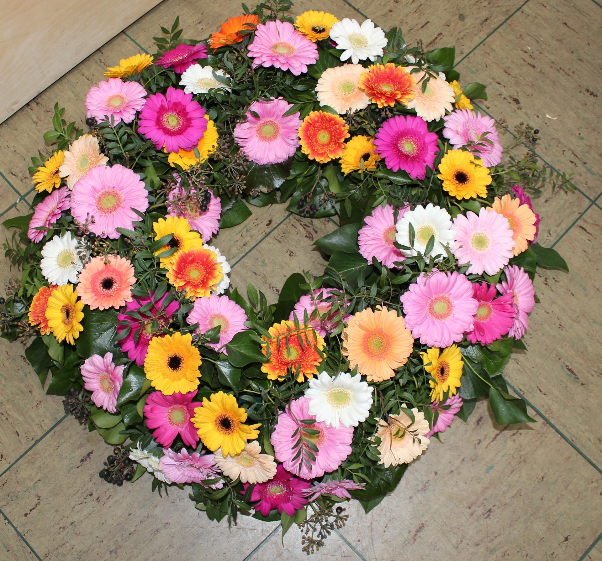 In Zeiten des Abschieds stehen wir Ihnen einfühlsam zur Seite. Unser erfahrenes Team berät Sie gerne bei der Auswahl der Blumen und Farben und stellt Ihnen individuell gestaltete Kränze und Gestecke für einen liebevollen Abschied zusammen. Wir bieten Ihnen auch die Möglichkeit, die Trauerfloristik mit einer persönlichen Beschriftung zu versehen. Unsere Floristen zeigen Ihnen verschiedene Vorschläge für Schleifen und beraten Sie bezüglich der gewünschten Schleifentexte. Darüber hinaus kümmern wir uns um die Lieferung der angefertigten Kränze und Gestecke zum Friedhof.