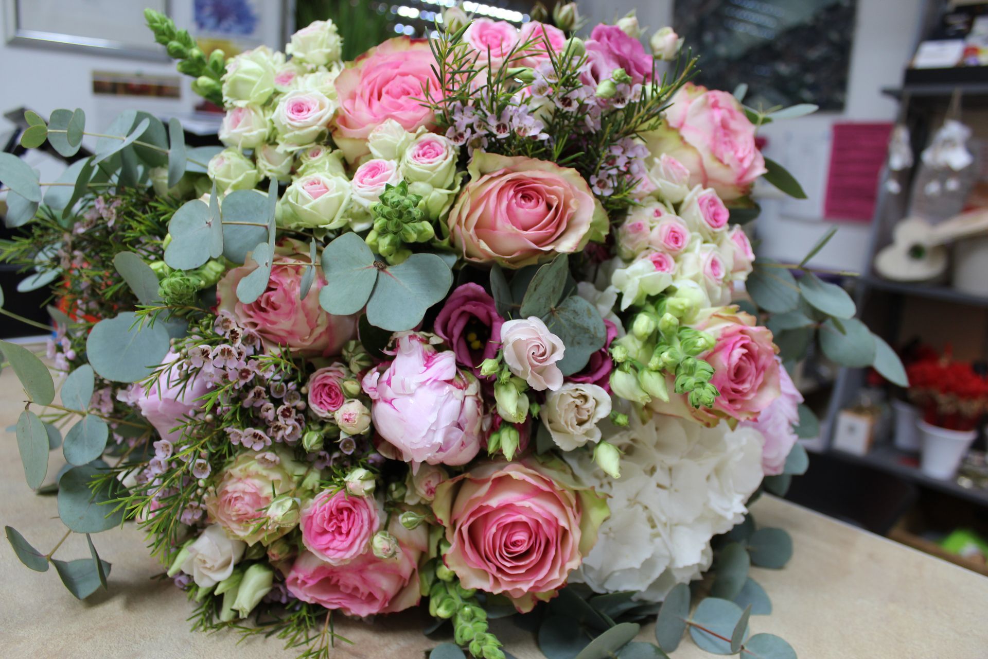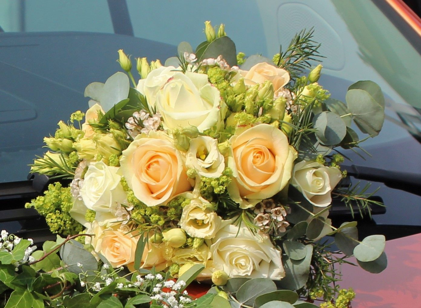 Unvergessliche Hochzeitsblumen für Ihren großen Tag! Von Brautschmuck über Tischdekoration bis hin zu Autoschmuck. Unsere floristischen Kreationen verleihen Ihrer Hochzeit eine ganz besondere Atmosphäre. Wir beraten Sie gerne bei der Auswahl der passenden Formen und Farben, damit Ihre Hochzeitsblumen perfekt zu Ihrem Stil und Thema passen. Entdecken Sie unsere modernen Arrangements für Kirchendekoration, Anstecker für den Bräutigam, Armbänder und Blumenkörbchen für die Blumenkinder. Lassen Sie Ihre Hochzeit mit unseren Blumendekorationen erstrahlen.